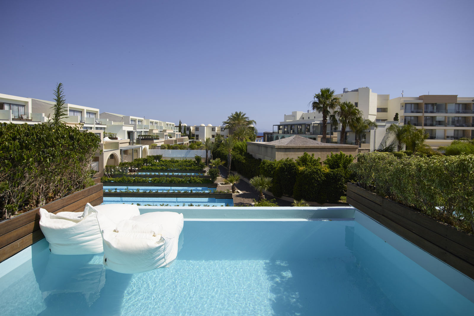 Vanuit je kamer loop je zo het strand op, voor een relaxte dag in de zon. Bij het zwembad geniet je van een lekkere cocktail en op loopafstand van het hotel vind je gezellige winkeltjes, restaurants en bars. Bij het diner kom je niets te kort; een gevarieerd internationaal buffet staat op je te wachten. Afhankelijk van je kamertype kun je ook kiezen voor het specialiteitenrestaurant oféén van de twee à-la-carterestaurants waar je Griekse, Japanse en Peruviaanse smaken proeft.